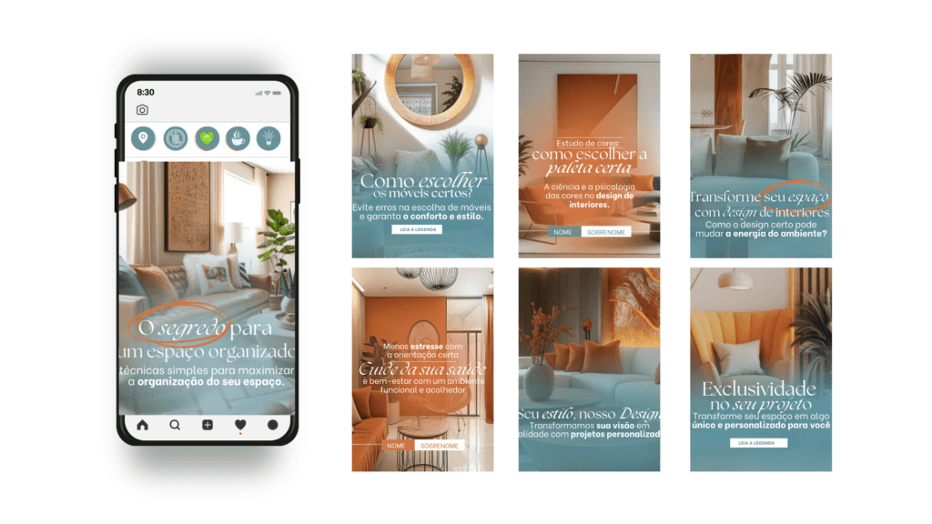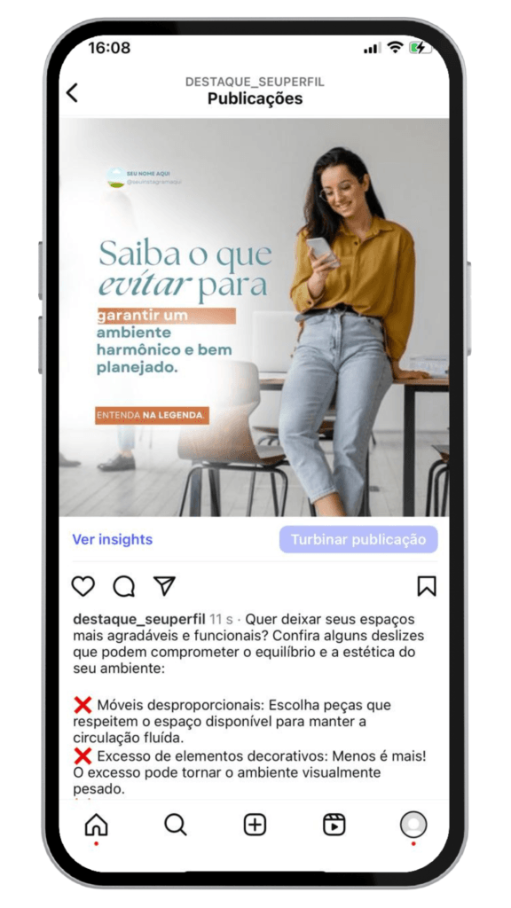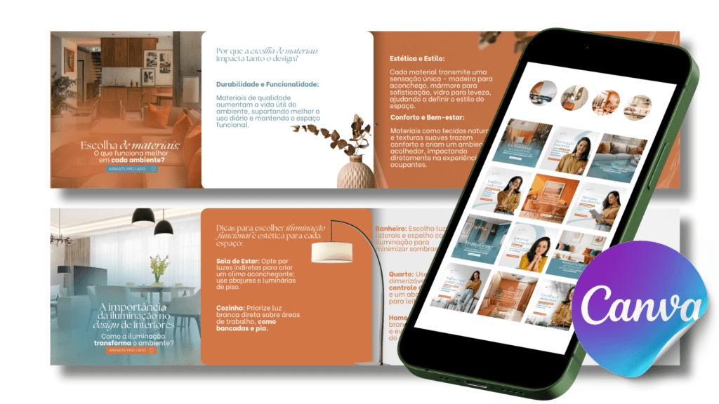 Com um design profissional e moderno, o material se destaca no feed, atraindo a atenção do público e aumentando o engajamento. Você terá layouts visualmente atraentes que fazem sua mensagem se destacar e passam uma imagem de autoridade e confiança para seus seguidores.