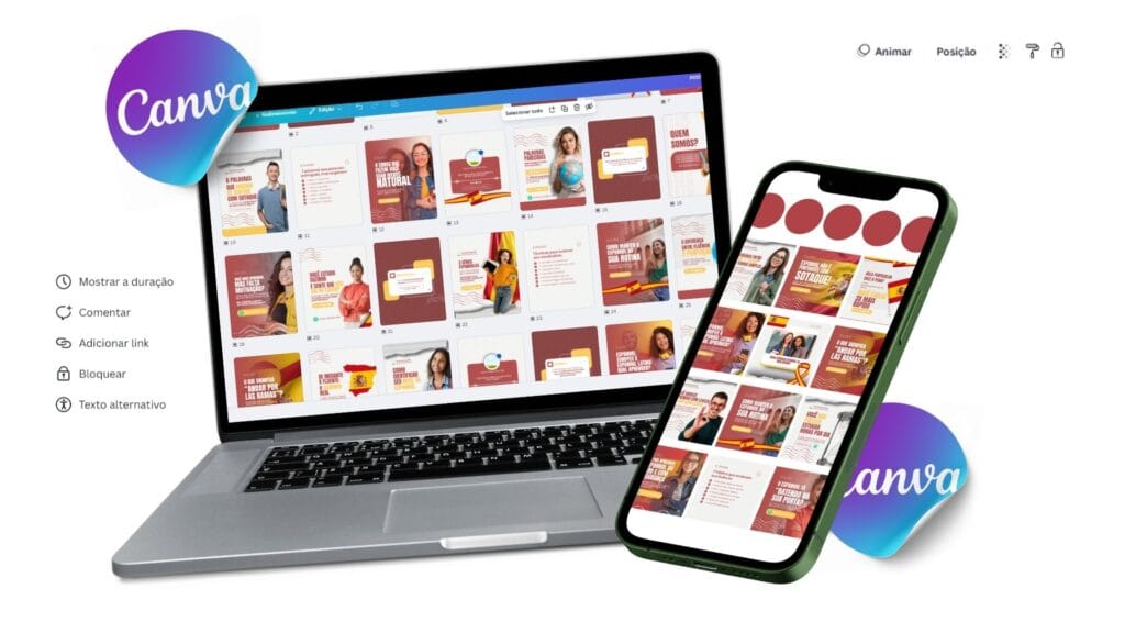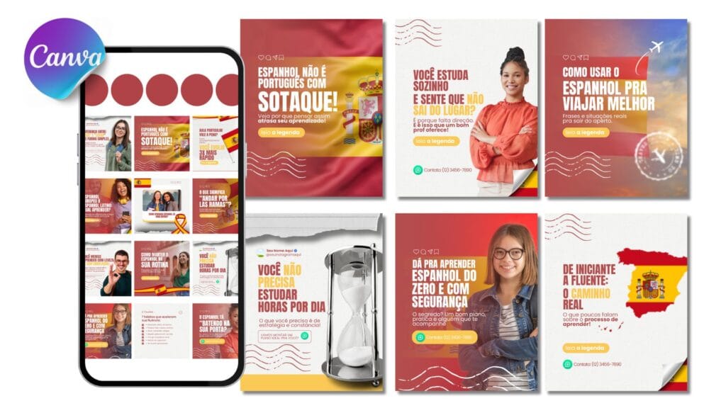 Conheça o material prático e 100% editável no Canva que vai te ajudar a construir um perfil de Instagram atraente e estratégico com poucos CLIQUES!
