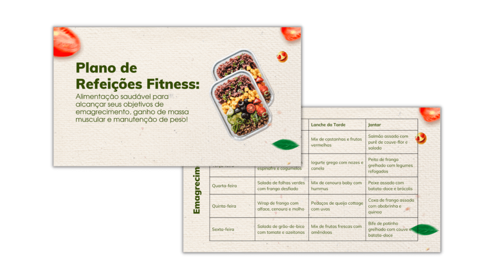 Plano de Refeições Fitness: material digital para personalizar e entregar aos seus clientes.