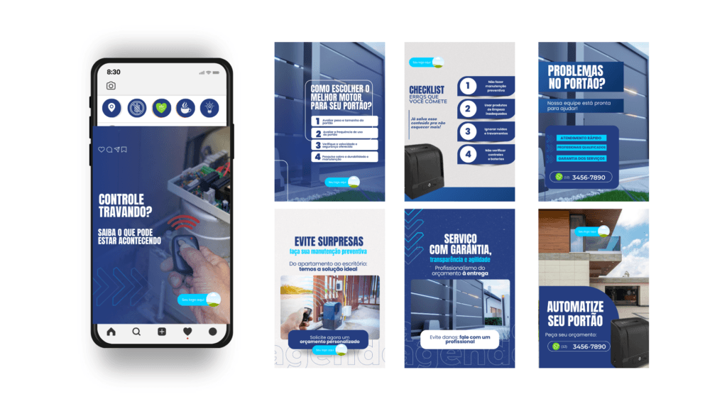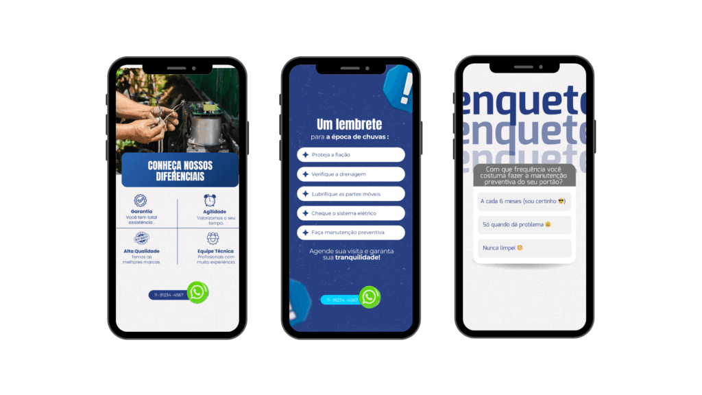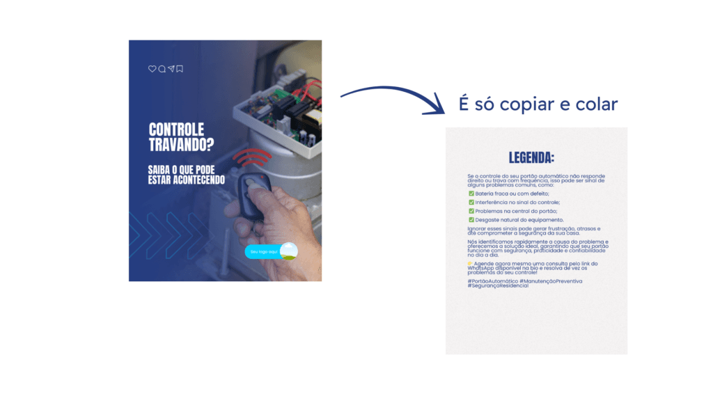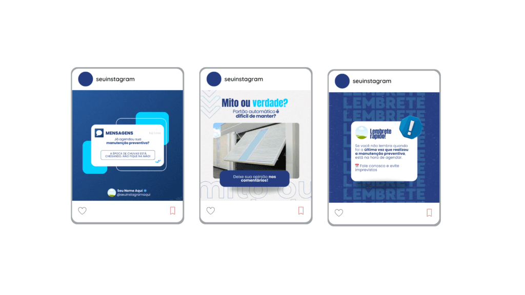 São conteúdos prontos para postar, direcionados para o seu nicho, com posts sobre manutenção preventiva, dúvidas comuns e divulgação do seu trabalho.