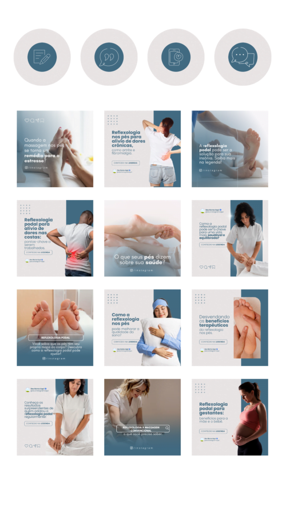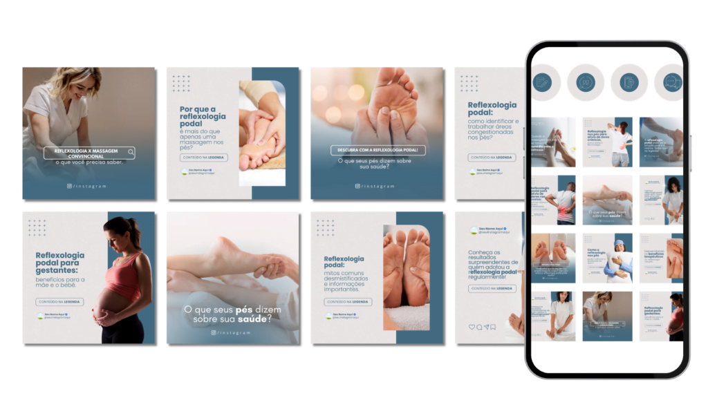COM O PACK PARA REFLEXOLOGIA PODAL você terá 60 posts ATRAENTES para divulgar seus serviços no Instagram de forma PROFISSIONAL!